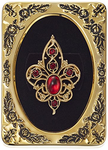 -. Feature : Vintage-inspired gold-tone filigree pin embellished with oval and round red crystals / Showcased in gold-tone frame embossed with etched roses / Made in the USA