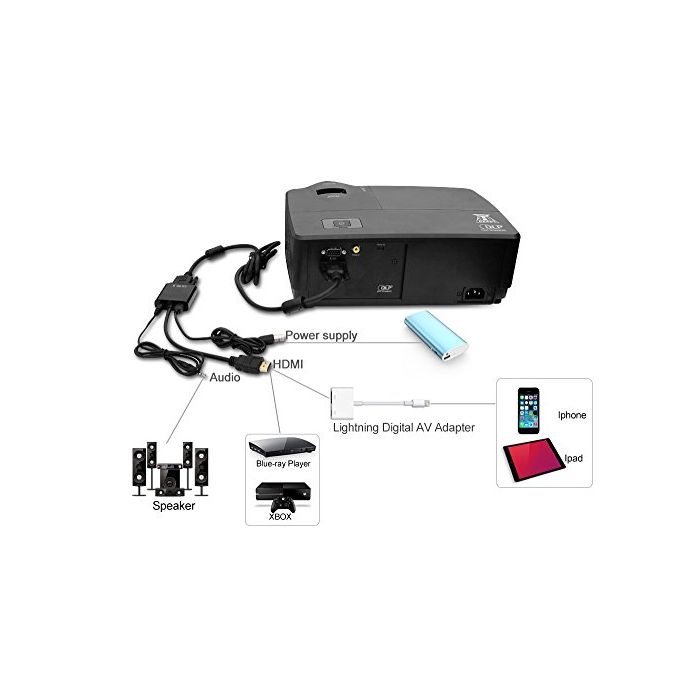 「사양」밝기:3600ANSI루멘 콘트라스트비 12000:1 네이티브 해상 도:1024x768,서포트:480i,480p,576i,576p,720p,1080i,1080p,4K.치수: 285 x 117 x 192 mm.무게: 1.938 kg.투영 거리: 1.97-2.17 (50''=2m)고, 투영 사이즈: 34''-150''