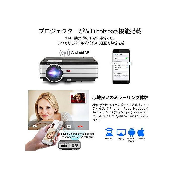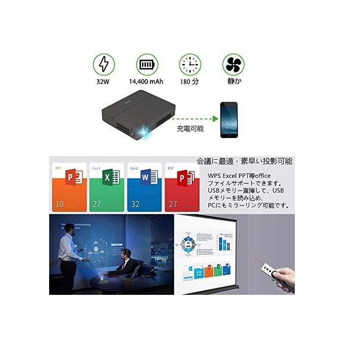 「하이 비젼 DLP 기술」낮에 조명이 켜진 채로 그렇지만 밝은 것 뿐만 아니라“《굿키리》”한 영상의 투영도 실현 하고 있는다.세미나나 회의 같은 비즈니스 현장뿐만 아니라,이벤트나 옥외 등 장소를 선택하지 않고 영상을 즐길 수 있습니다.생활 가능성을 넓혀 주는 프로젝터입니다.