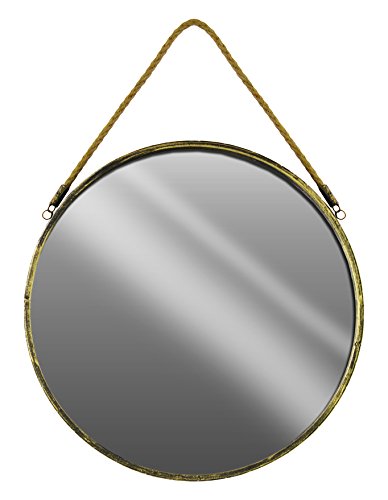 Urban Trends Metal Round Wall Mirror with Rope Hanger LG Tarnished Finish Gold, Large