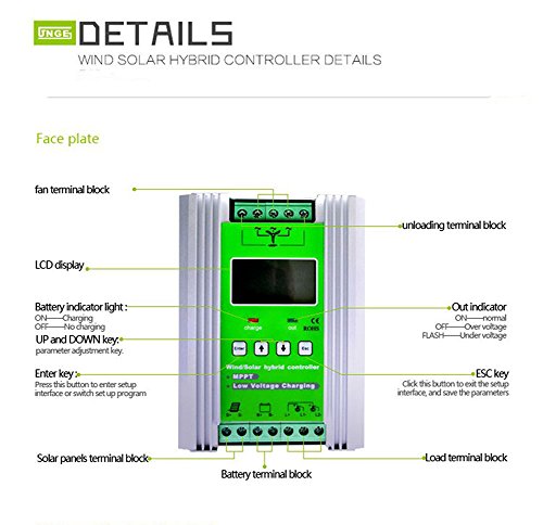 JNGE POWER 1000W Off Grid MPPT Wind Solar Hybrid Charge Controller 24V 40A for 600W Wind 400W Solar with Booster and Free Dump Load