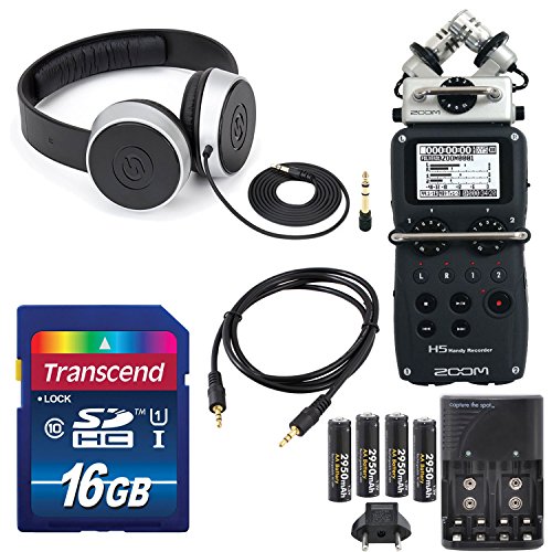 Zoom H5 Four-Track Portable Recorder with Interchangeable Microphone System Including Samson Studio Headphones and Deluxe Accessory Bundle