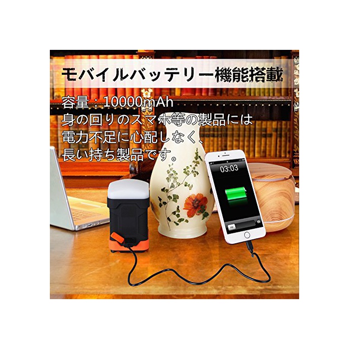 휴대폰의 전원USB충전:USB충전 기능:10000 mAh충전식 리튬 배터리 내장,모바일 배터리로서도 이용 가능. iPhone 6 / 5S에 약4회의 충전.매회 점등은 200시간입니다.