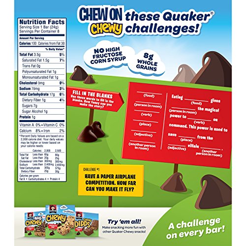 -. Title : Quaker Chewy Granola Bar, Chocolate Chip, 8-Count Bars (Pack of 12)