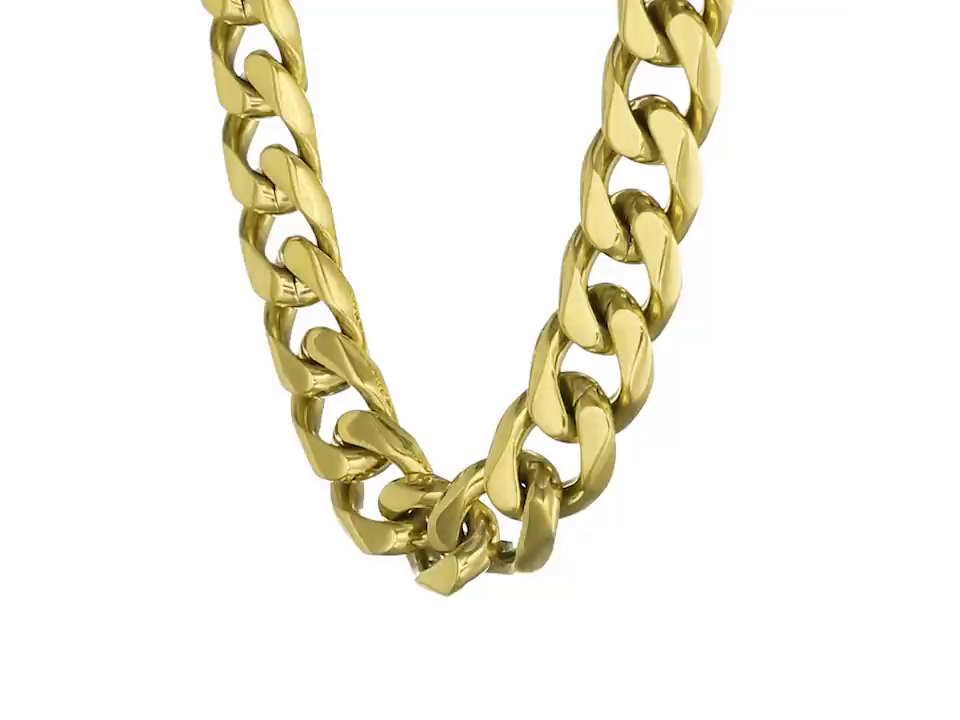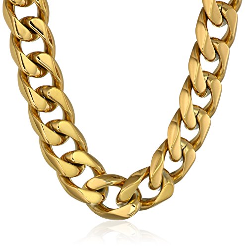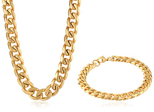 Men's Gold-Tone Stainless Steel Curb-Chain Bracelet and Necklace Jewelry Set