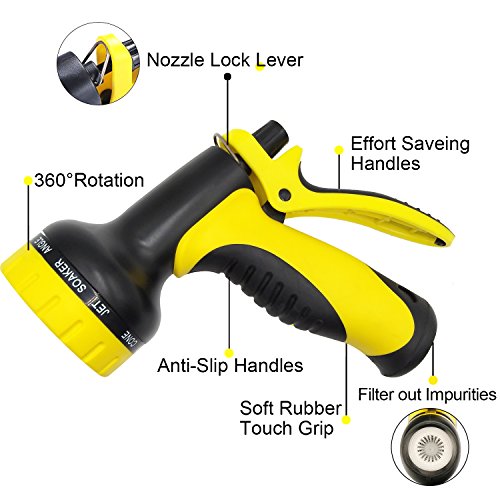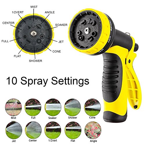 Podura Garden Hose Nozzle Spray Nozzle 10 Adjustable Watering Patterns - Slip Resistant for Watering Plants, Cleaning, Car Wash and Showering Pets