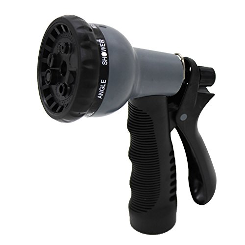 GLOUE Garden Hose nozzle 8-Pattern Plastic Sprayer With Rubberized Handle (Grey)