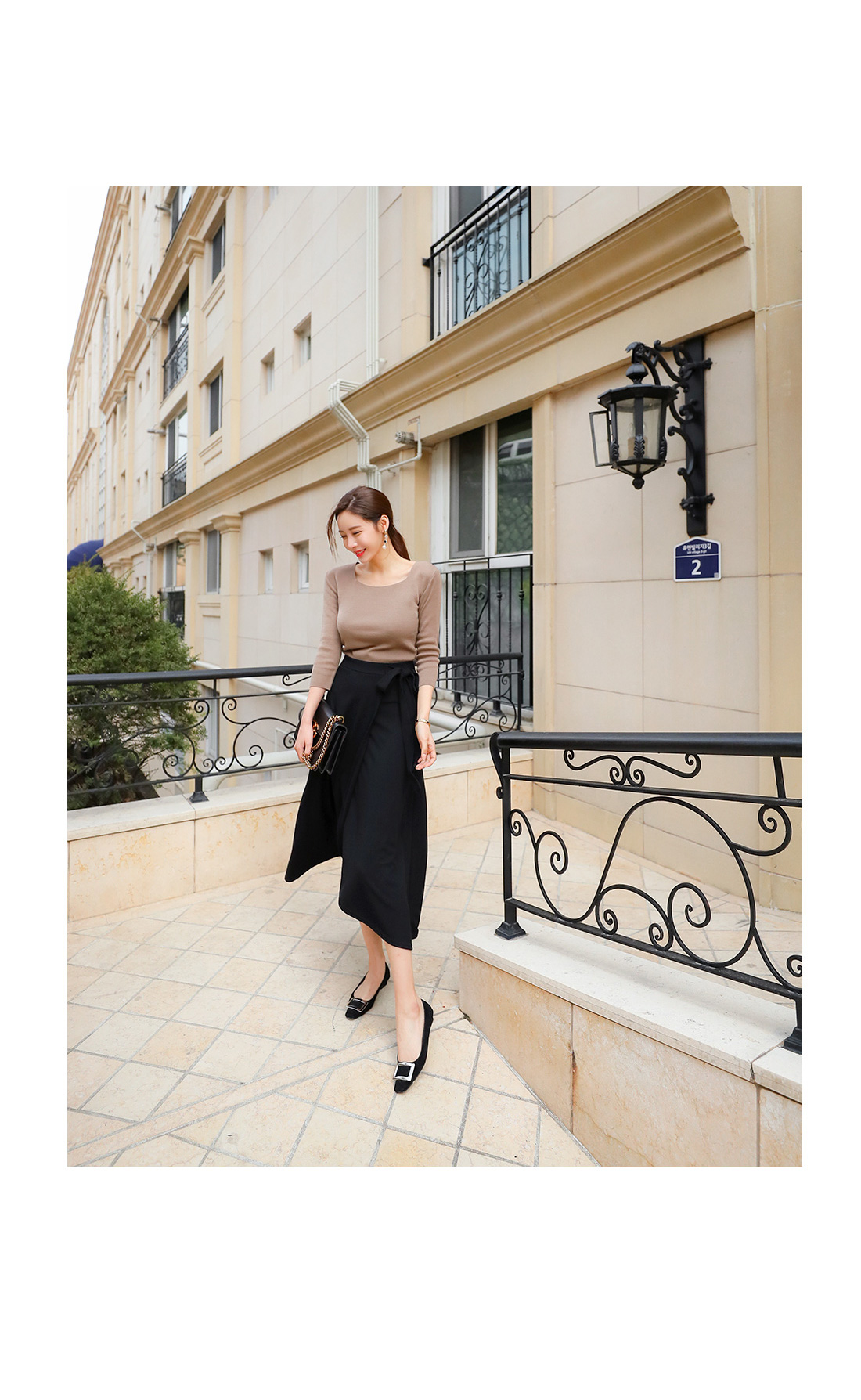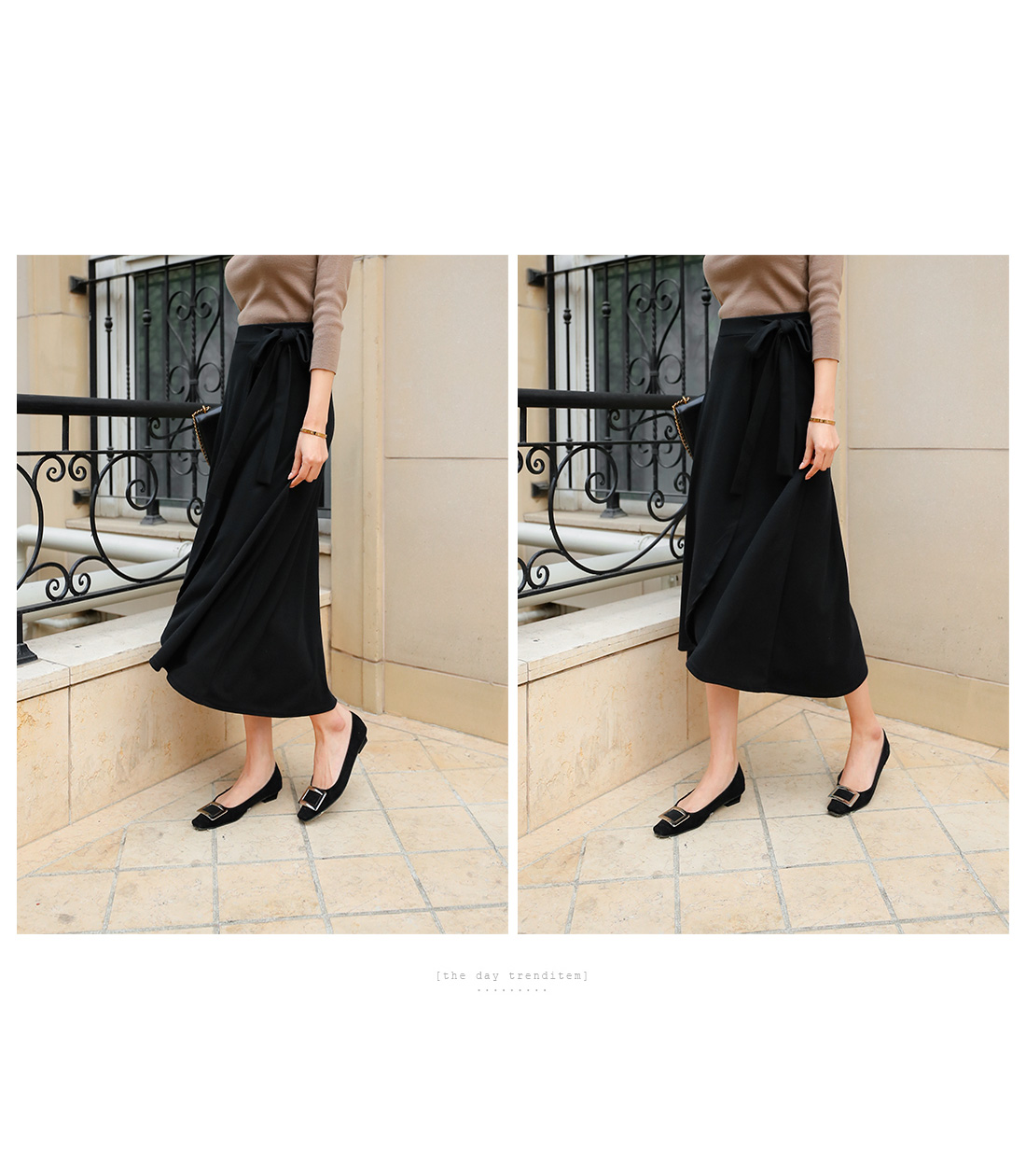 플레어 라인의 랩 스커트를 소개합니다.허리 밴딩 타입으로 제작되어 편하게 입기 좋으며허리 라인을 한번 더 잡아줘안정감있는 착용감을 선사해준답니다.언발란스한 기장의 플레어 실루엣으로 제작되어입었을때 핏이 더욱 예쁘며군살을 잘 가려줘 체형커버에도 효과적이랍니다.랩 디자인에 리본 디테일이 포인트로 들어가 여성스러운 무드를 더했어요부드럽고 신축성 좋은 소재로 제작되어편하고 가볍게 입기 좋으며컬러는 블랙, 카키, 핑크, 차콜로 구성되었답니다.