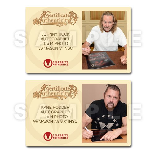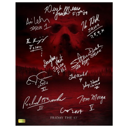 - Personally hand signed by Derek Mears, Kane Hodder, C.J. Graham, Steve Dash, Ted White, Tom Morga, Ken Kerzinger, Ari Lehman, Caleb Guss, Johnny Hock, Doug Tait and the late Richard Brooker; In stock and ready to ship.