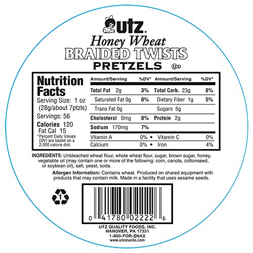 -. Title : Utz Honey Wheat Braided Twists Pretzels Barrel