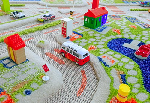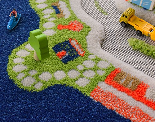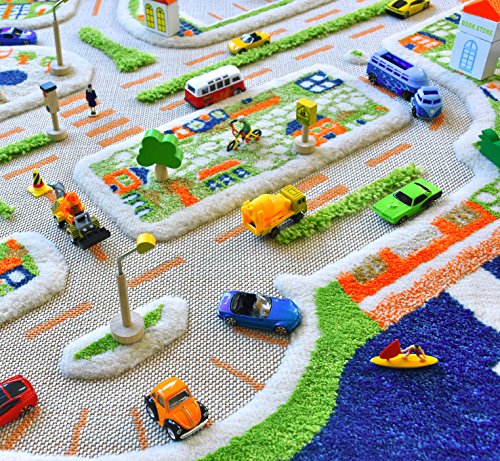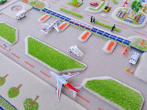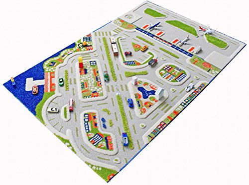 IVI Mini City Exclusive Thick 3D Kids Car Rug in a Colourful Town Design with 3 Dimensional Aiport, Car Parks and Roads, Multicolor