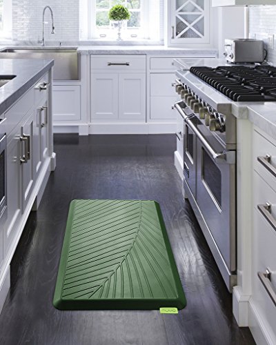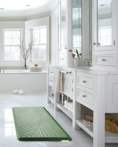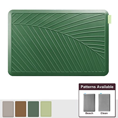 NUVA Anti-fatigue Mats >99.9% Antimicrobial, Easy Clean, 36x24x0.75 in., Water Resistant, Non-toxic Odor, Yellow PU Antislip Strip Bottom - Keep 10 years High Resilience (Grass Green, Palm Pattern)