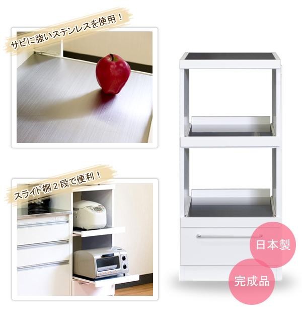 面倒な組立不要。完成品で日本製のレンジ台です。