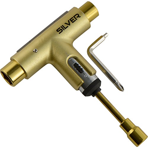 Studio : Silver Trucks Publisher : Silver Trucks Binding : Misc. Product Description This all-in-one, multi-functional Silver Trucks Spectrum Multi-Purpose Skate Tool allows you to make personal adjustments and fine tune your skateboard or longboard, tighten your trucks, and change your wheels. Made from high-quality materials, this Silver Trucks skate tool is light enough to carry with you, yet durable enough to get the job done.Includes: One (1) Silver Trucks Spectrum Multi-Purpose Skate Tool from Silver Trucks with 3/8 inch axle nut socket, ½ inch king pin nut socket, 9/16 inch truck mounting nut socket, and Phillips and Allen head screwdrivers. 0