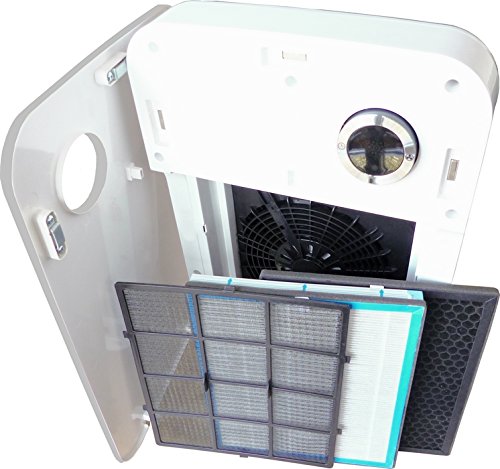 -. Feature : Ausgestattet mit einem HEPA Filter. Fängt und filtriert Partikel von bis zu 0,0003 mm Größe ! / Aktiv-Kohle Filter, reinigt viele Arten von Rauch, Gerüchen und giftigen Dämpfen ! / Luftsensor-Funktion, misst automatisch die Luftqualität und richtet den Betrieb danach aus ! / Mit Auto-Zeitschaltuhr (Timer) + drei Geschwindigkeitsstufen und Vorfilter ausgestattet ! / LED Anzeige inkl. der Luftqualität + Filterwechselanzeige + GS geprüft + Leiser Betrieb !