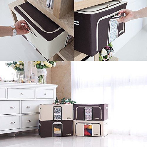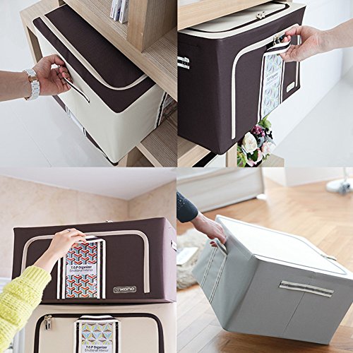 Kano Polyester Foldable Decorative Storage Boxes Archival Storage boxes Wire frame Storage Box 2Pack 2 Door 56L Brown