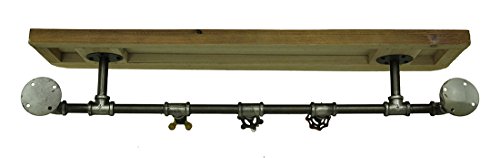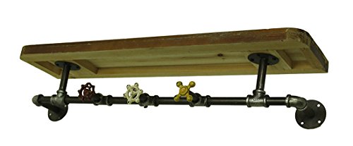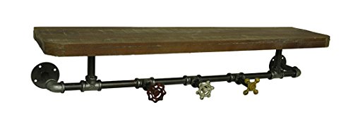 Zeckos Wood & Metal Decorative Wall Hooks Rustic Industrial Pipe & Faucets Wood Wall Hook Shelf 31.5 X 6 X 7.5 Inches Multicolored