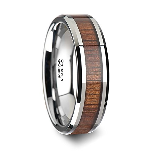 -. Title : THORSTEN - KONA Tungsten Carbide Wedding Ring with Koa Wood Inlay and Polished Beveled Edges Comfort Fit Lightweight Durable Wooden Wedding Band - 6mm