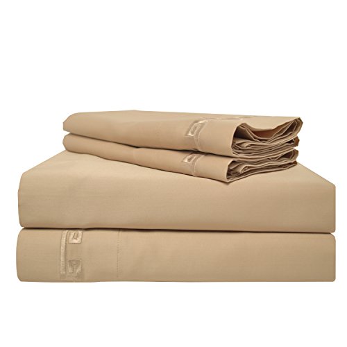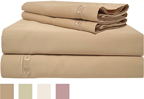 600 Thread Count 100% Premium Long-Staple Combed Cotton, Deep Pocket, Single Ply, King Bed Sheet Set, Embroidery Greek Key, Beige