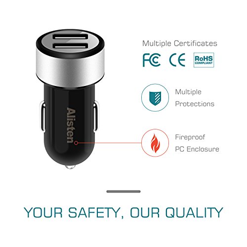 Car Charger Dual Port Auto USB Charger Mini Small Convenient Vehicle Safety Cellphone Charger Guaranteed & Certified Multiple Intelligent Devices iPhone Android Smartphone Compatible - Black