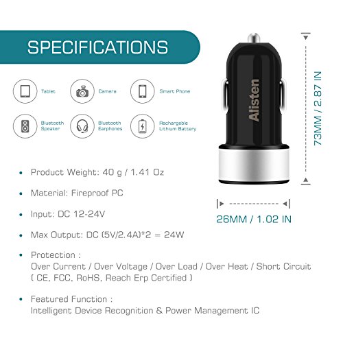 Conveniently tiny for a vehicle charging: Drive for a meeting far away & having your tablet low in power? Place the charger in a secured location & connect your device to the charger, and you will have no worries for the rest part of your driving. Conveniently designed in a tiny size (2.2 * 1.02 * 1.02 INCH), this charger could be placed in a secure location in your vehile to ensure intime charging to your device while posing no obstruction to your driving.