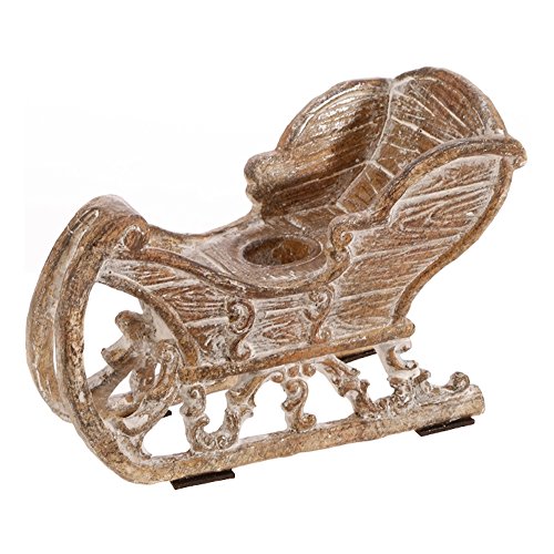 Whitewashed Wood-look Santa Claus Christmas Sleigh, Vintage style, Decorative, 13 Inch x 5 x 8 Inch