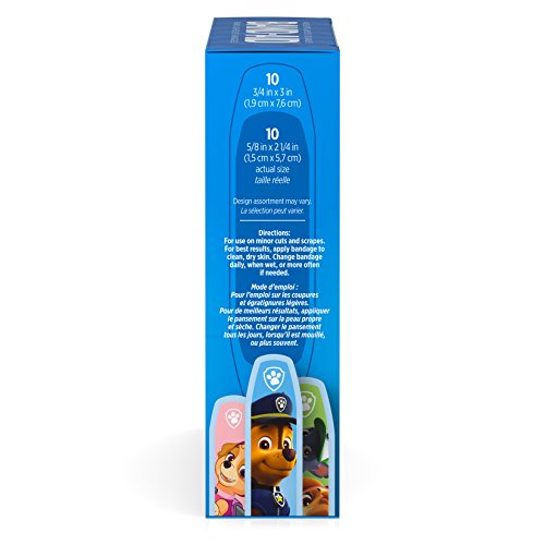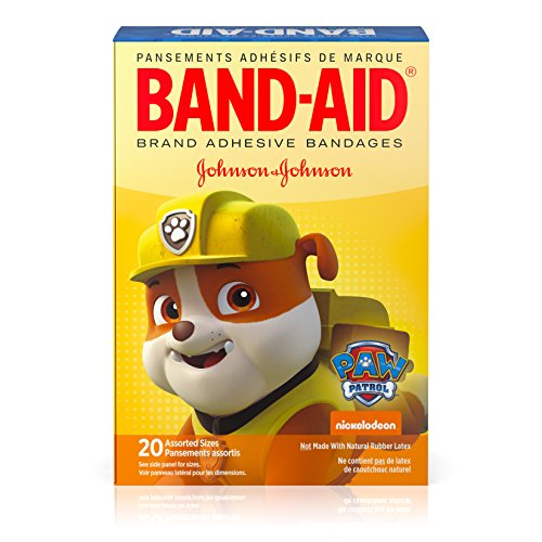 Band-Aid Brand Adhesive Bandages featuring Nickelodeon Paw Patrol cover and protect minor cuts and scrapes with fun Nickelodeon Paw Patrol graphics. These sterile bandages come in assorted sizes with designs that include Ryder and his team of pups. Band-Aid Brand Adhesive Bandages stick to the skin, not the wound. This package contains 20 sterile bandages in assorted sizes suitable for small wounds.Feature