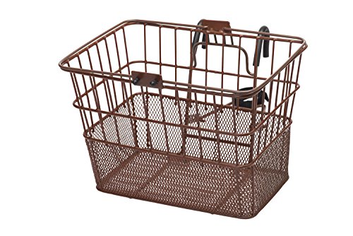 Detachable steel bicycle basket with mesh bottom for smaller, loose objects