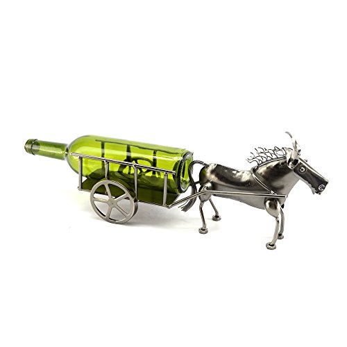 WINE BODIES ZB990 Running Donkey Cart Metal Wine Bottle Holder, Charcoal