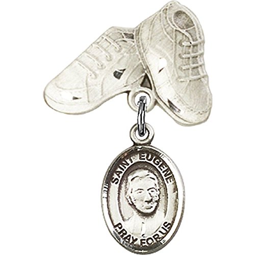 -. Title : Sterling Silver Baby Badge with St. Eugene de Mazenod Charm and Baby Boots Pin 1 X 5/8 inches