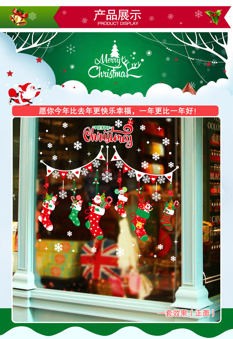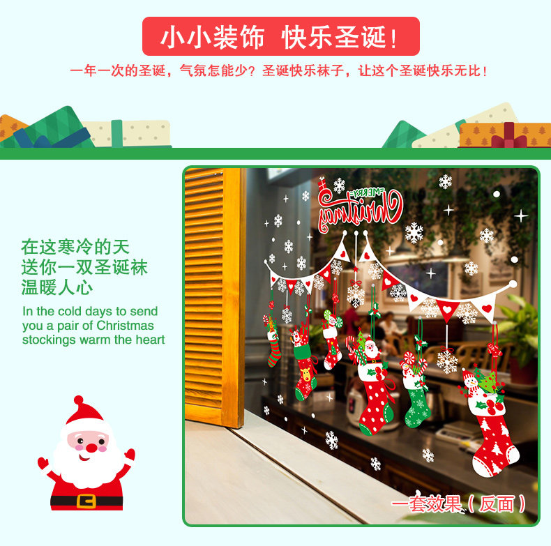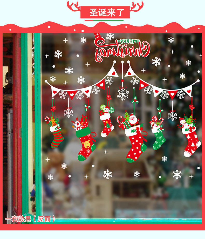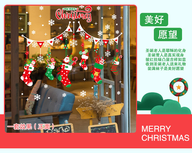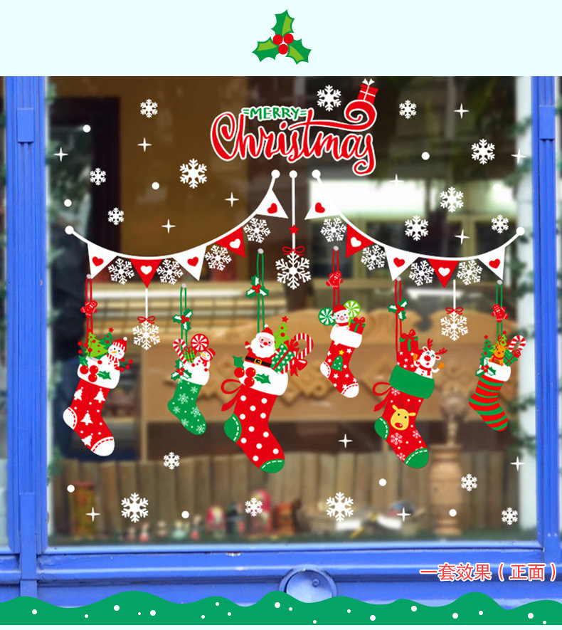 圣诞节玻璃橱窗户贴纸贴画装饰品场景气氛布置彩色卡通圣诞袜挂件