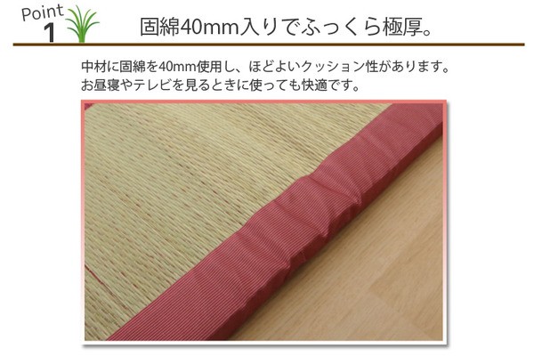 【素材】側地=い草 ※普通織 中材=固わた40mm ヘリ=綿100%(返し二方)