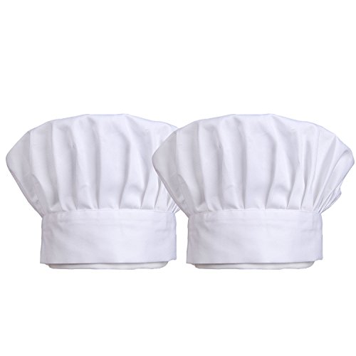 TraderPlus Chef Hat Unisex Adult Adjustable Elastic Baker Kitchen Cooking Chef Cap Set of 2 (White)