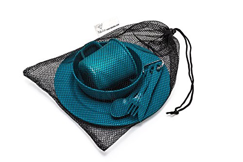 ★ THE MESH BAG: Lightweight mesh bag complete with name tag allows for easy identification and storage of your camping mess kit, even after a quick rinse in the nearby stream.