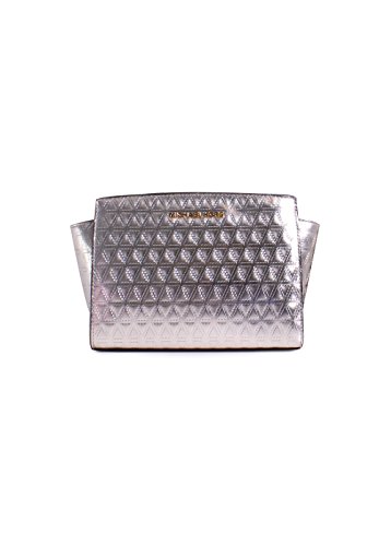 Michael Kors Selma Leather Triangle Quilted Medium Messenger Handbag in Champagne
