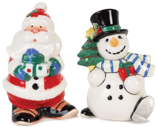 - Beautifully crafted, hand-painted set includes a jolly Santa Shaker and smiling Snowman Shaker