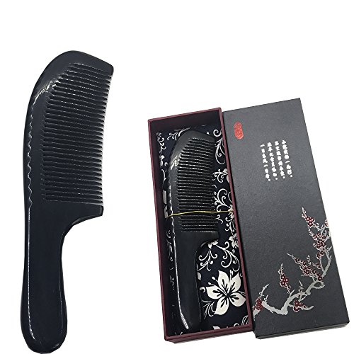 100% Handmade Black Ox Horn Comb Handmade Premium Quality Natural Wide Tooth Round Handle
