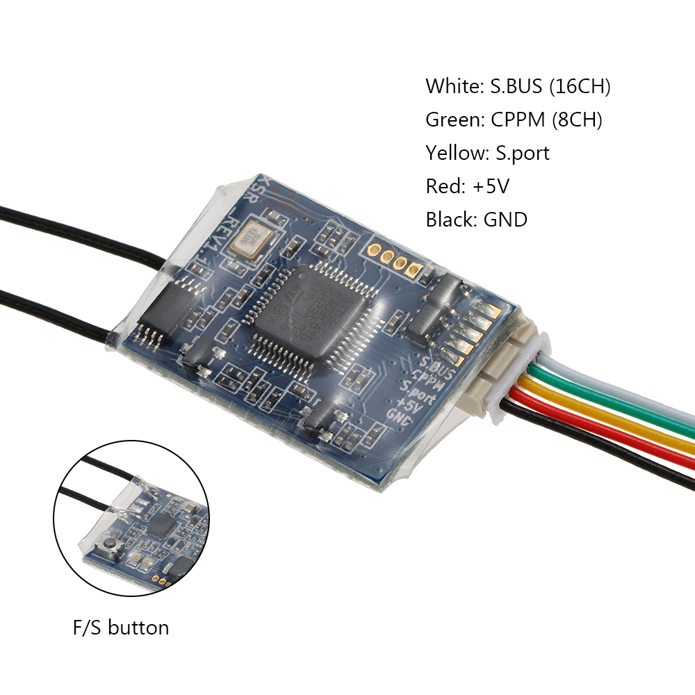 FrSky's XSR 2.4GHz receiver features 16ch, with S-Bus and CPPM. This little guy is physically small and light weight. Making it great for micro race quads!
