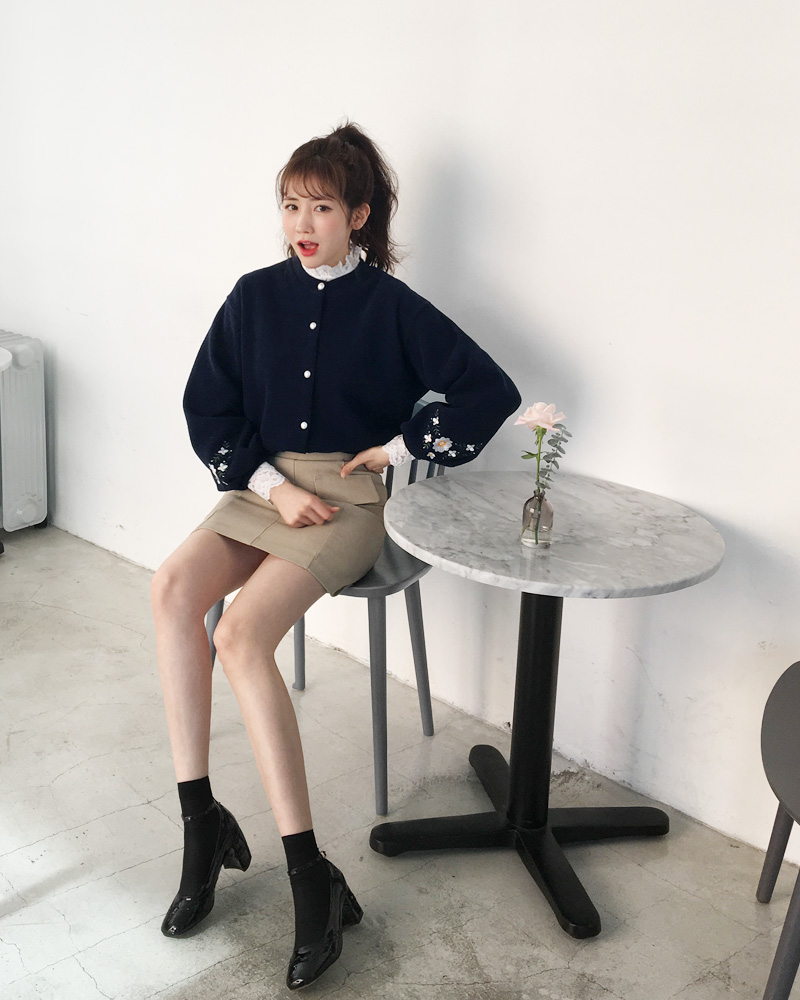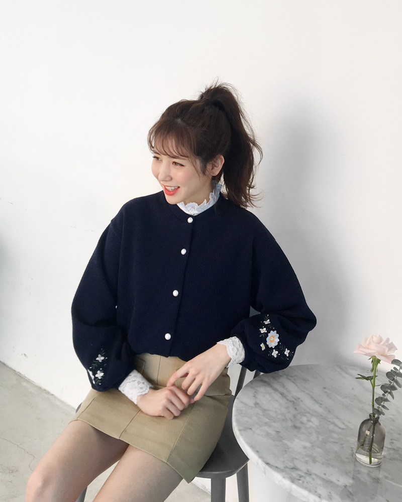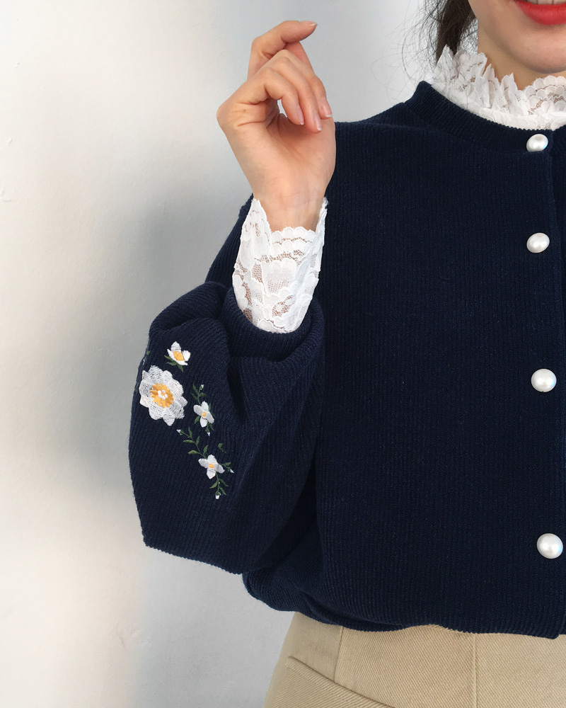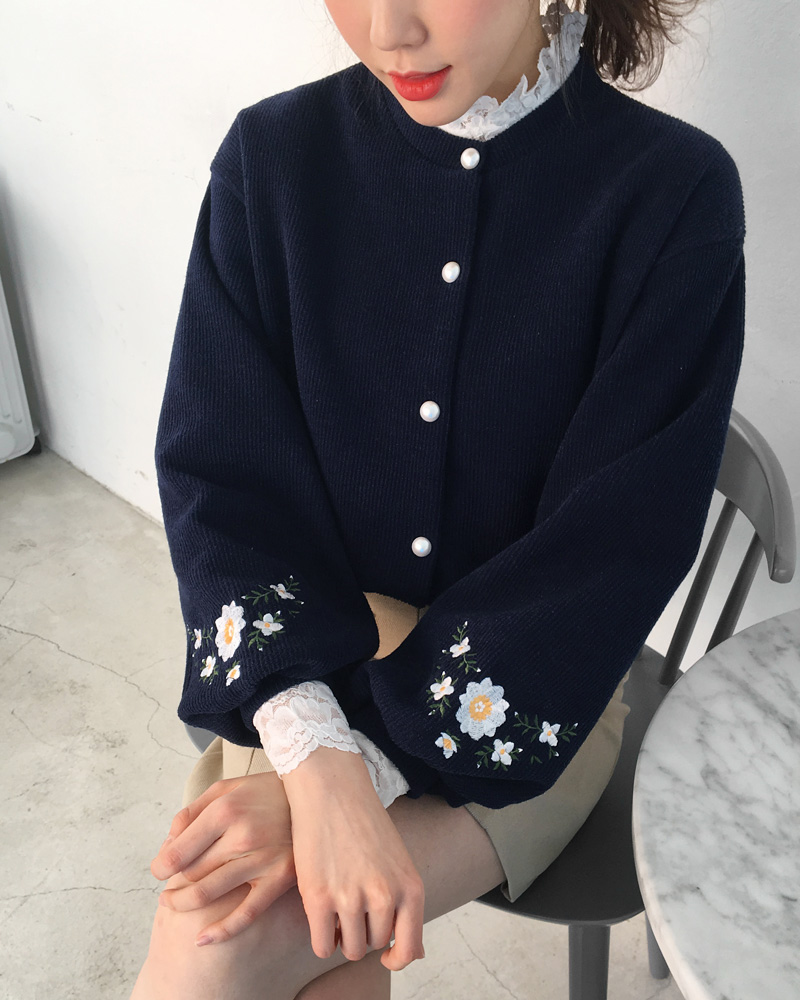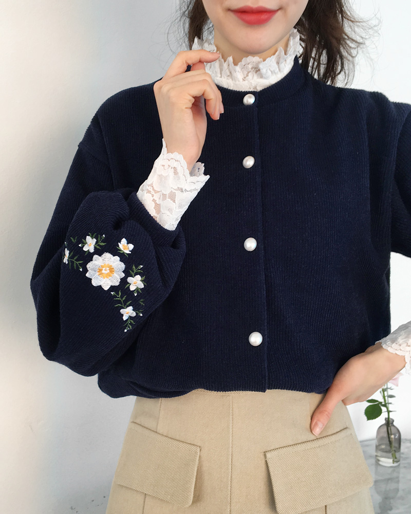 - 刺繍デザインの可愛らしいカーディガン製品です
