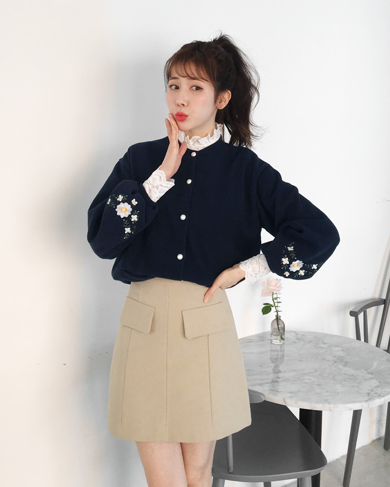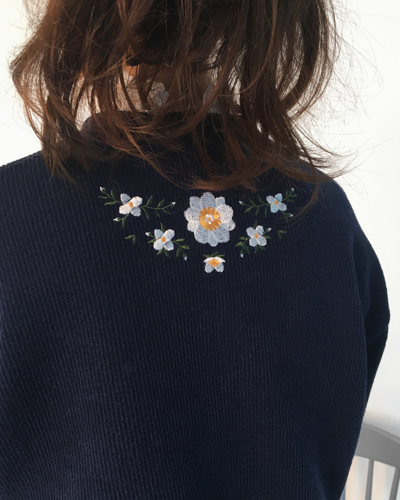 - 小売部屋の両側に刺繍ディテールを与えヴィンテージながらも女性らしさが感じられるスタイルです