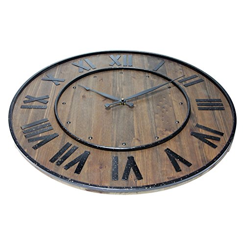 - Feature : Dimensions: 24 diam. x 1.5D x 24H in. / Stained wood case with metal ring / Traditional design with roman numerals / Black steel hands / Accurate quartz movement