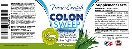 -. Binding : Health and Beauty -. Brand : Optimo Essentials -. EAN : 0712324552416 -. Feature : • Made with the highest quality natural ingredients which helps support healthy bowel movements; supports healthy energy levels; alleviates bloating and supports weight loss / Helps you reach your fitness goals faster / Contains 11 herbs, fiber and nutrients to detoxify the body / All-natural; No fillers / Helps cleanse & protect the liver; Supports detox of muscles -. IsAdultProduct : 0 -. Label : Optimo Essentials -. Manufacturer : Optimo Essentials -. ProductGroup : Health and Beauty -. ProductTypeName : HEALTH_PERSONAL_CARE -. Publisher : Optimo Essentials -. Studio : Optimo Essentials -. Title : Nature's Essentials PREMIUM Colon DeTox Cleanse - 60 Capsules - MADE IN THE USA - The Ultimate Detoxifying Herbal Cleansing! -. UPC : 712324552416
