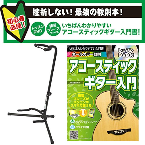 -. Feature : アコギ入門に嬉しいレッスンDVD付き教則本とラッカー塗装対応のギタースタンドがセットになりました