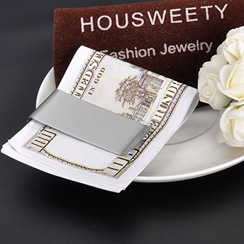 -. Title : HOUSWEETY Stainless Steel Card Holder Right Angle Rectangle Money Clip with Free Engraving