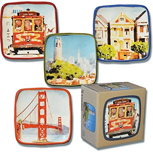 - 4 Watercolor coasters of famous San Francisco landmarks