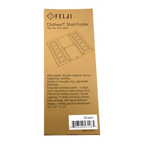 Studio : Felji Publisher : Felji Binding : Kitchen Product Description This Flip Fold Adult Clothes Folder Shirt Folding Board folds almost any article of clothing in no time at all: short-sleeve shirts, long-sleeve shirts, t-shirts, collared shirts, shorts, pants, undergarments, and more. If you are looking for a new convenient and efficient way to fold your shirts in a short amount of time look no further than the Shirt Folding Board. Once you try it you will never want to fold clothes the old-fashioned way ever again! Make your life easier and more convenient by cutting down on the time you spend folding clothes. With this product folding clothes is easy simple and fun. Reduce the amount of time you spend doing household chores. The best t shirt folder to clean up the clutter in your closets and drawers: Saves time and easy to use Can accommodate shirts XS-L Folded items include shirts towels sweaters and even pants Folds clothes neatly and without creases so that the clothes can be stored quicker and easier Suitable for all ages Fun to use especially for the kids T-Shirt folder is easy to store! Made from high quality plastics, along with ventilated windows help reduce static cling because the windows increase folding speed allowing for a crisp tight fold that helps guard against wrinkles, measuring at 23" x 27" x 1.2". Folding Boards come in the following colors: Black, Green, Yellow, Red, and Blue. 0