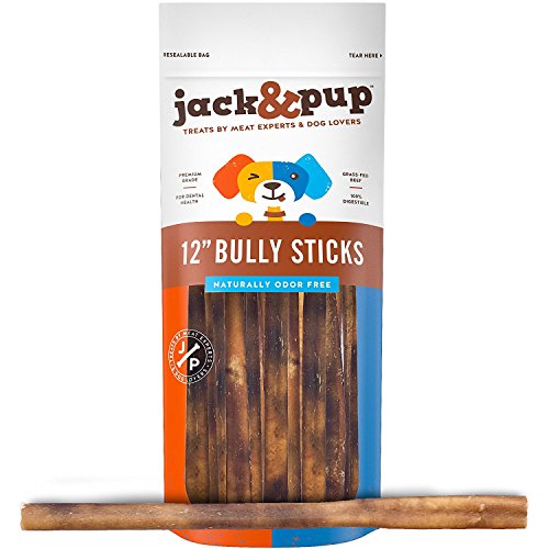 -. Title : Jack And Pup 12-inch Premium Grade Odor Free Thick Bully Sticks Dog Treats (10 Pack) 12 Inches Long All Natural Gourmet Dog Treat Chews ? Fresh and Savory Beef Flavor ? Long Lasting Treat