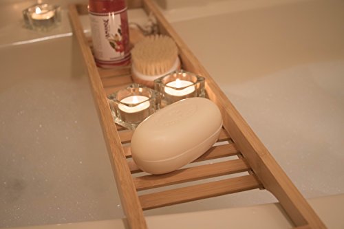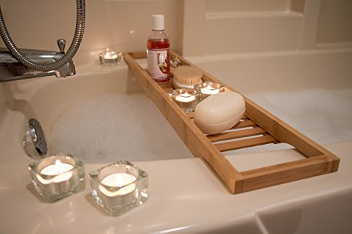 - QUALITY DESIGN: It has never been as easy to enjoy a relaxing bubble bath than it is with this bamboo bath caddy board. Whether you are reading a book, swiping through social media on your tablet or just relaxing with some candles, this tub caddy is guaranteed to make your bath time more enjoyable and relaxing
