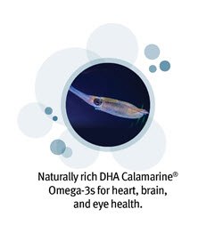 900 MG OF CLEAN, NATURALLY HIGHER IN DHA OMEGA-3S for heart, brain, eye, and digestive tract health. Sourced from wild, deep sea calamari-not fish!-caught in the pristine South American waters, Calamarine provides omega-3s with DHA for heart, brain, and eye health. Because of their short life-cycle, there is a constantly renewing supply and no threat of over-fishing, making Calamarine an eco-friendly, renewable, and fresh source of omega-3s.