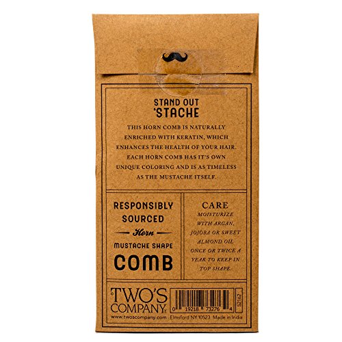 Light Brown Stand Out 'Stache 5 x 2.5 Inch Horn Bone Mustache Comb in Gift Envelope